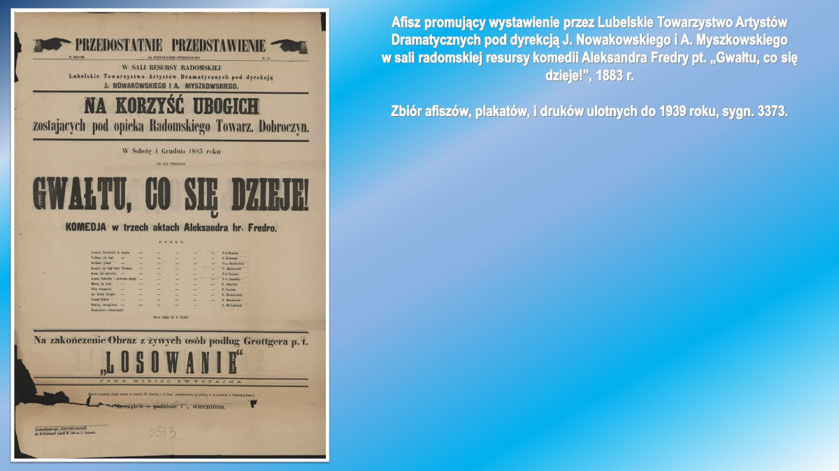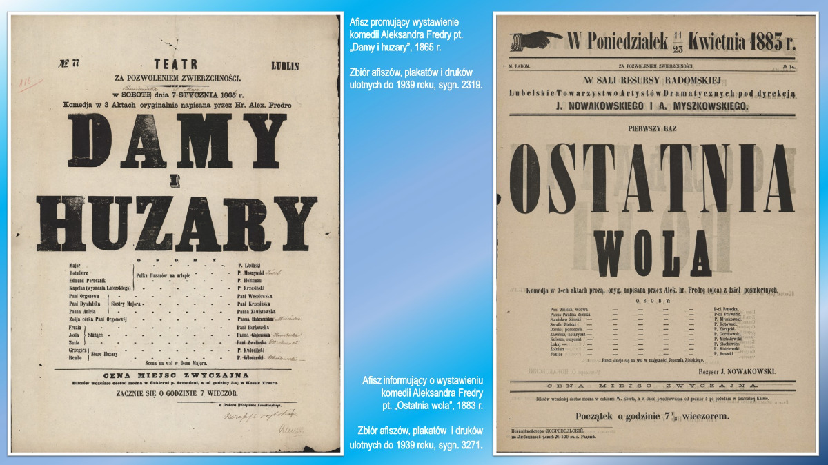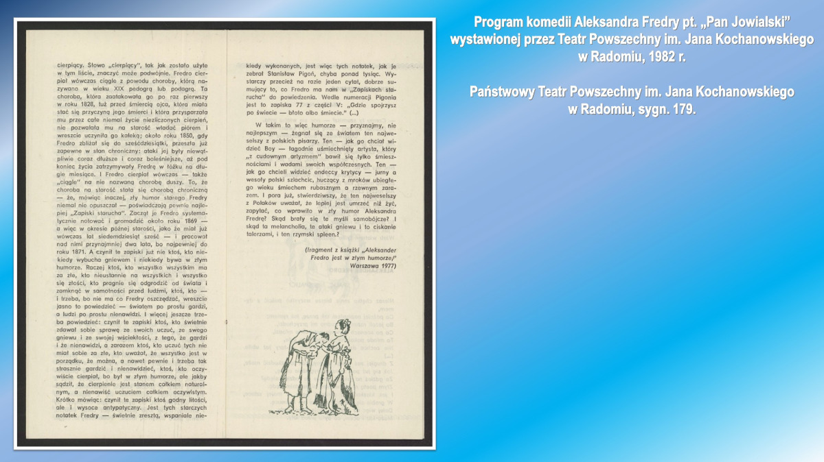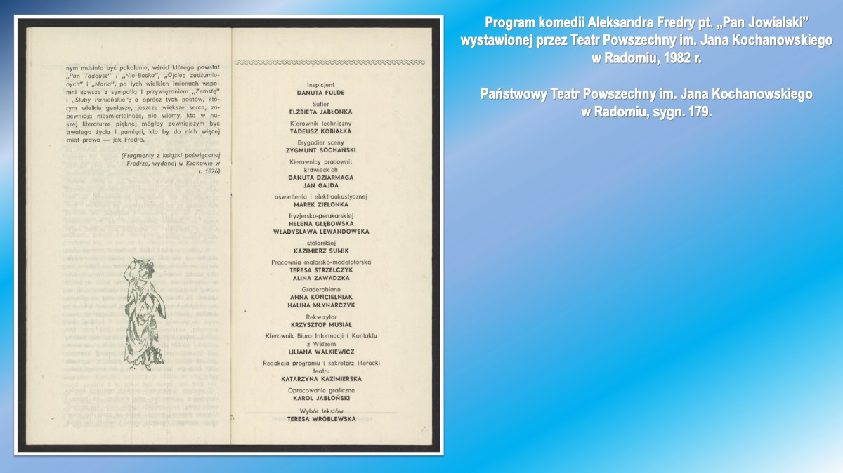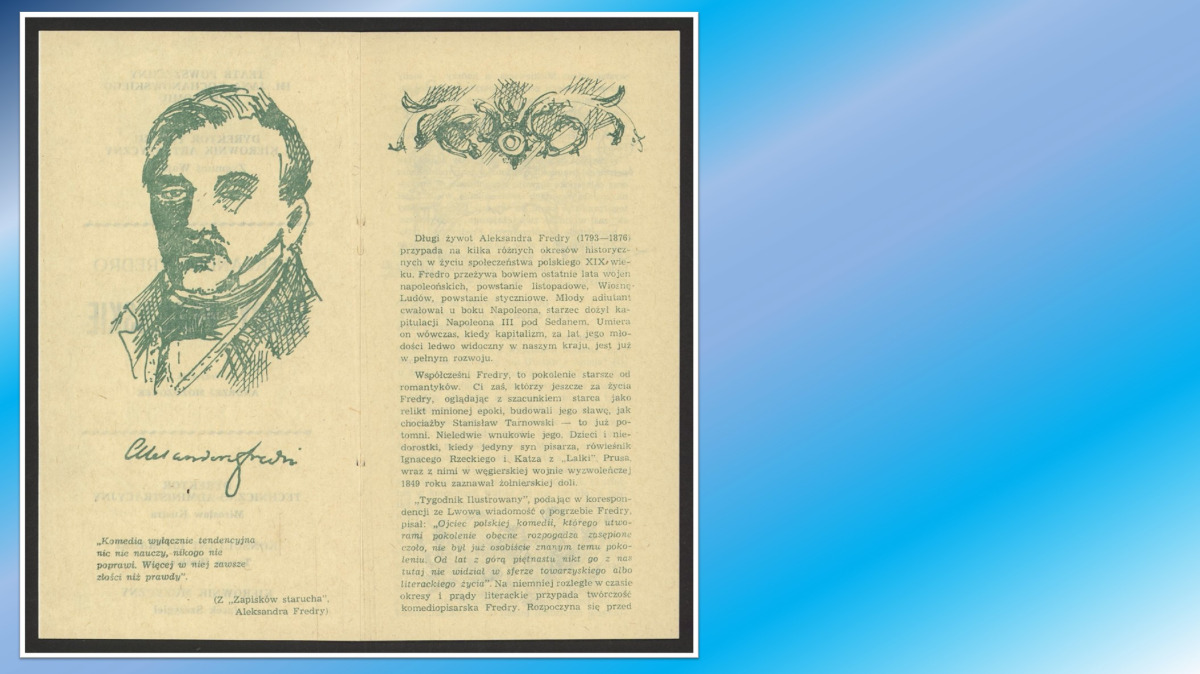 Archiwum Państwowe w Radomiu w związku z powyższym przygotowało wirtualną ekspozycję przybliżającą sylwetki nadmienionych patronów i prezentującą źródła z nimi powiązane, które stanowią afisze, programy teatralne, karty pocztowe, fotografie i inne dokumenty.