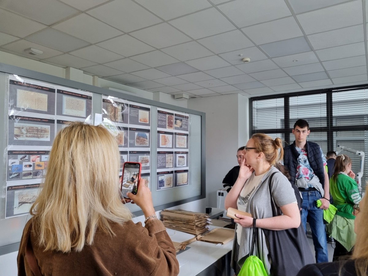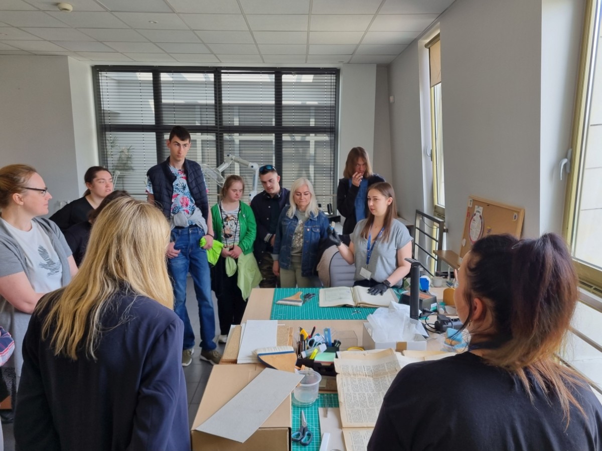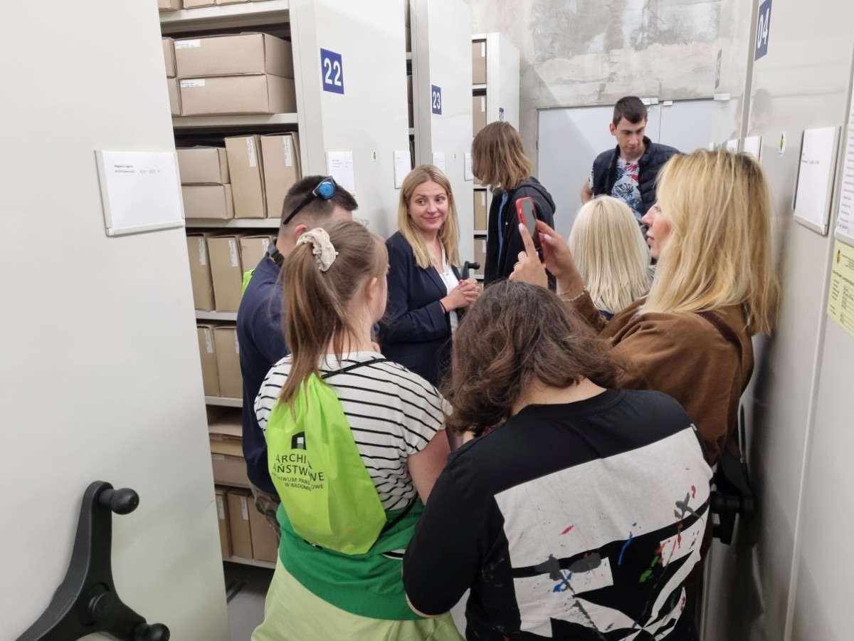 Przedstawiła zagadnienia związane z zadaniami pracowników w Archiwum Państwowym w Radomiu, opowiedziała o tym jak gromadzimy materiały archiwalne, jak je zabezpieczamy i przechowujmy. Zaprezentowała wybrane oryginalne archiwalia przedstawiające różnorodną dokumentację. Na zakończenie spotkania Pani Dyrektor Ewelina Majsterek wraz kierowniczką Oddziału II Panią Aleksandrą Nosowską oprowadziły gości po magazynach. Odwiedziliśmy również pracownię konserwacji i digitalizacji.