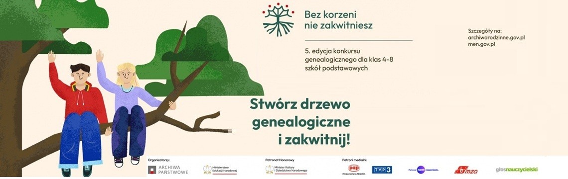 Zapraszamy uczniów klas 4-8 szkół podstawowych i ich nauczycieli do udziału w 5. edycji konkursu „Bez korzeni nie zakwitniesz. Moja Wielka i Mała Ojczyzna”! Zadaniem uczestników, podobnie jak przy poprzednich edycjach, będzie przygotowanie projektu edukacyjnego z drzewem genealogicznym swojej rodziny. [...]