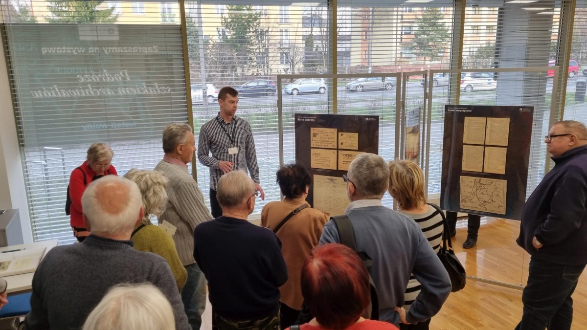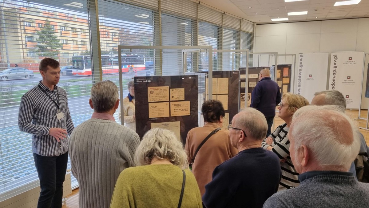 Pracownik archiwum i jednocześnie jeden z kuratorów, pan Krzysztof Głowacki, miał przyjemność zaprezentować zgromadzonym osobom wystawę pt. „Podróże szlakiem archiwaliów”. Prezentowane dokumenty to nie lada gratka dla miłośników wojaży, zarówno tych małych, jak i dużych. Wśród prezentowanych materiałów na wystawie, w formie oryginalnej, jak i reprodukcjach, znajdują się: paszporty, bilety komunikacyjne, fotografie, listy i wspomnienia z różnych podróży i wiele innych archiwaliów. Nie zabrakło również map, informatorów i szlaków turystycznych oraz źródeł odnoszących się do Polskiego Towarzystwa Turystyczno-Krajoznawczego.