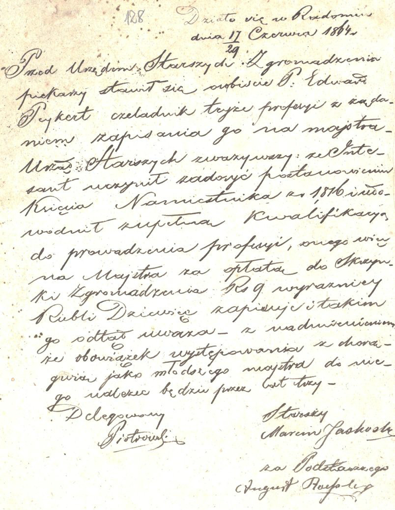 Najstarszy z rodzeństwa, Edward, mieszkając jeszcze w Zgierzu podjął naukę „profesji piekarskiej” w piekarni Jana Krauzego. Edward Pajkert w 1859 r. otrzymał stopień czeladnika i niedługo potem, razem z rodziną Jana Krauzego, przeniósł się do Radomia. Po przybyciu do tego miasta Jan Krauze – z pomocą Karla Krauzego (prawdopodobnie swego ojca, jednego z członków-założycieli Cechu Piekarzy w Radomiu) – został 26 lutego 1861 r. zapisany na majstra piekarskiego we wspomnianym cechu. Zmarł w 1862 r. W następnym roku owdowiała Marianna wyszła za mąż za młodszego od siebie o 25 lat Edwarda Pajkerta, który przejął w ten sposób piekarnię swego dawnego mistrza.