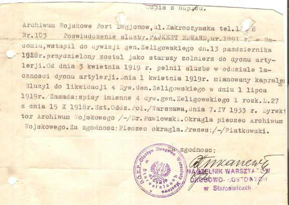Młodsze rodzeństwo Edwarda: Julianna i Józef (urodzeni w Kaliszu), oraz Emil i Teofila (urodzeni w Zgierzu), wraz rodzicami Ludwikiem i Ludwiką Pajkertami przenieśli się do Radomia. W roku 1867 najstarsza siostra Edwarda – Julianna, mieszkająca wówczas „przy bracie”, wzięła ślub z Julianem Szczecińskim, majstrem piekarskim zamieszkałym w Miechowie, i wyjechała z Radomia. Mieli oni sześcioro dzieci: cztery córki i dwóch synów. Byli to: Karol Marcel (ur. w 1875 r.), Emilia Wiktoria (ur. w 1877 r.), Jan Władysław (ur. w 1879 r.), Lucyna Emilia (ur. w 1881 r.) oraz Emilia Barbara (ur. 1886 r.). Wszystkie dzieci urodziły się w Miechowie.