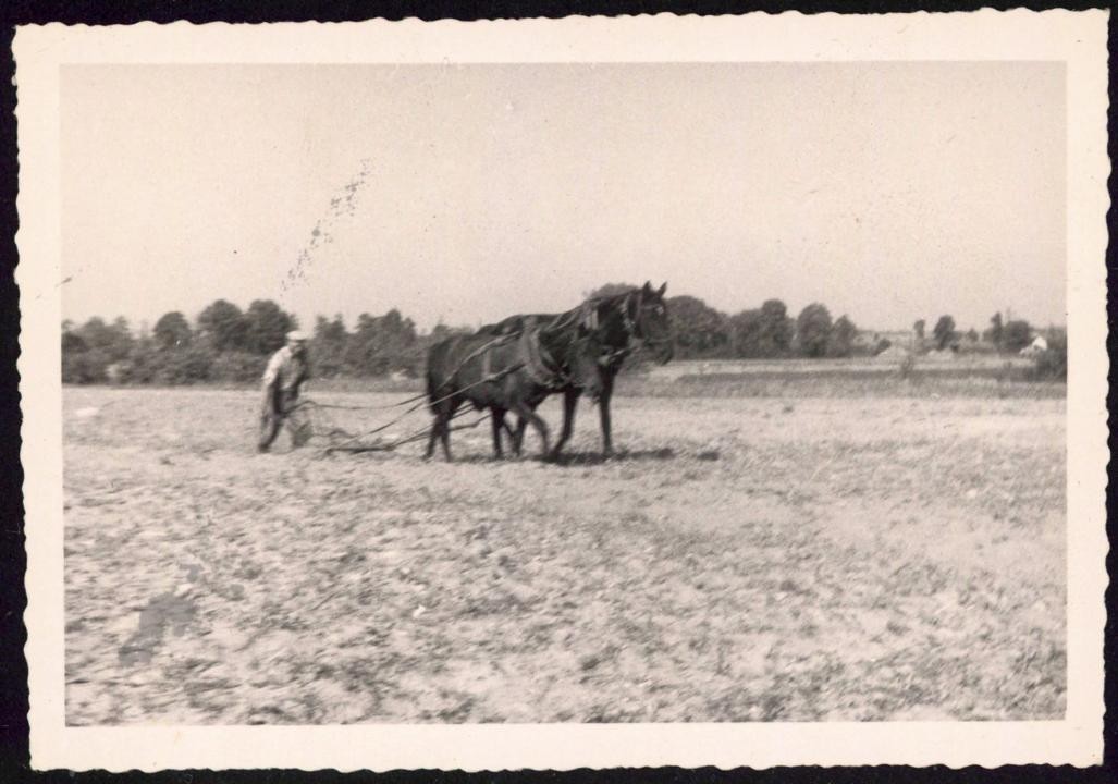 Oranie pola pługiem konnym w okresie PRL-u (Zbiór Michała Tadeusza Osińskiego, sygn. 45)