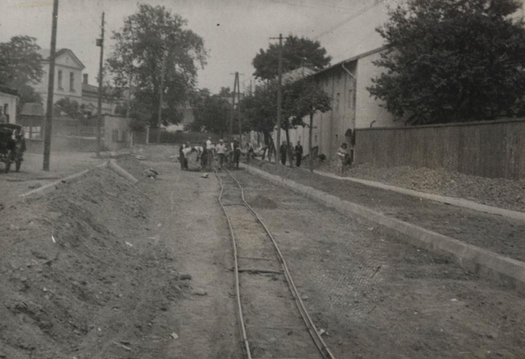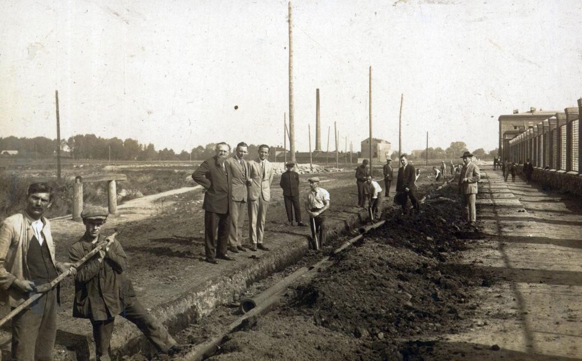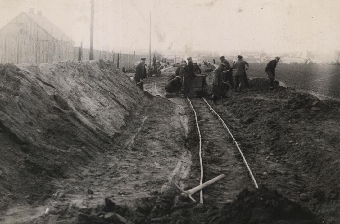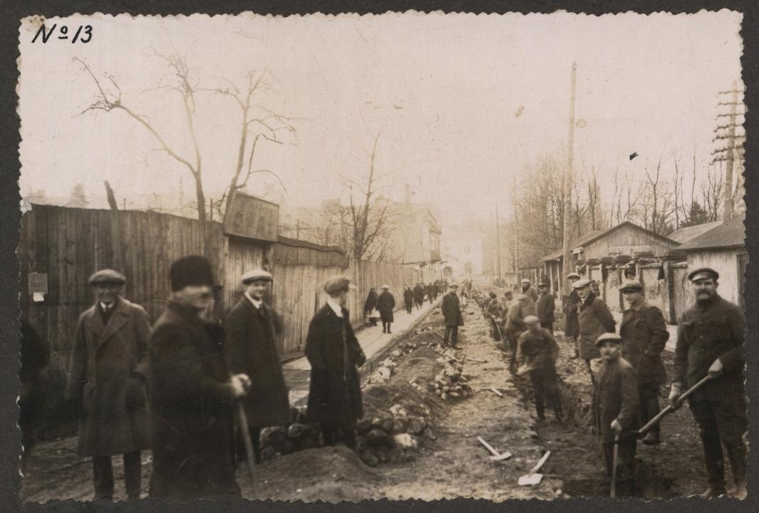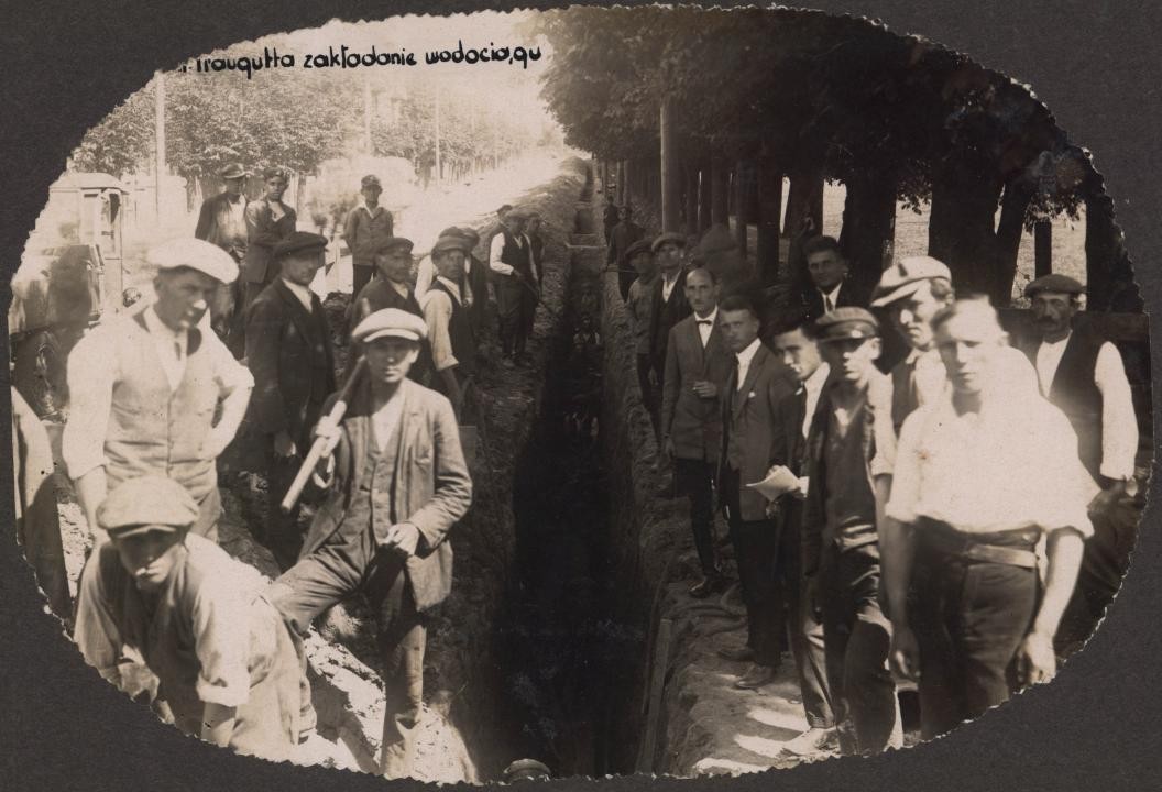 Prace przy budowie sieci wodociągowej w Radomiu [ul. R. Traugutta,lata 20. XX w.] (Miejska Służba Drogowa w Radomiu, sygn. 16)