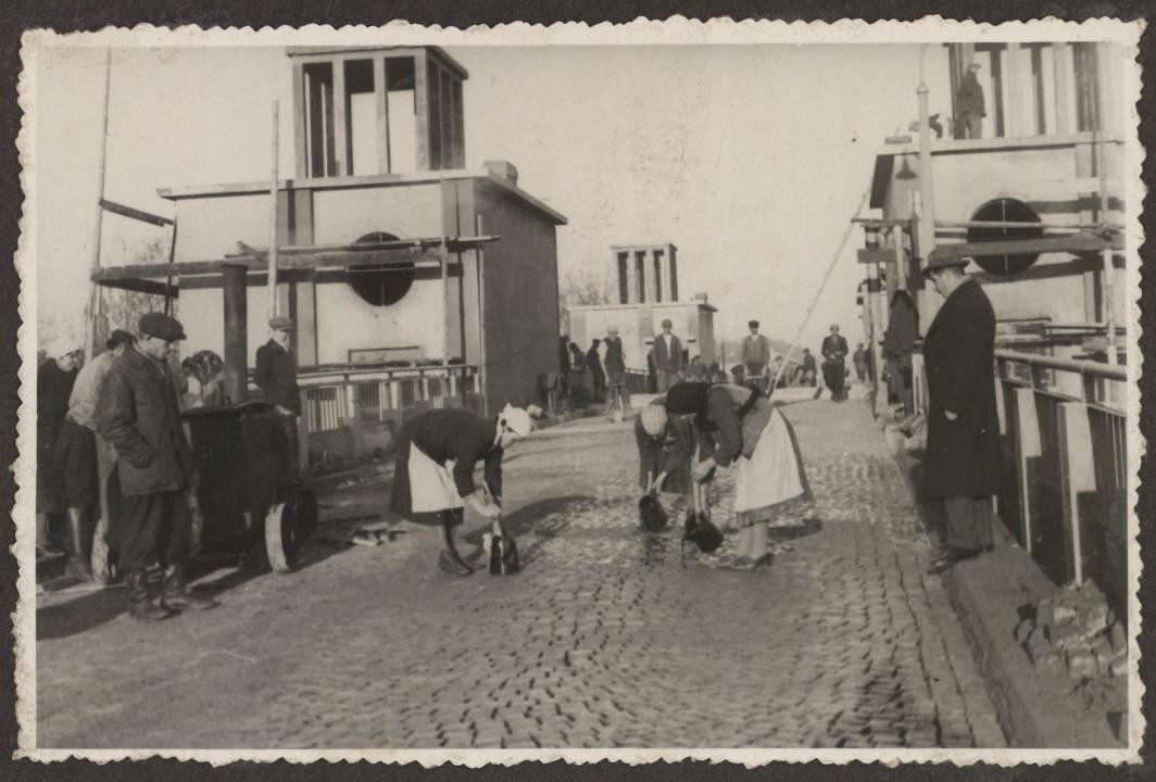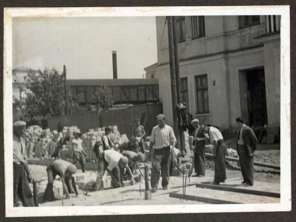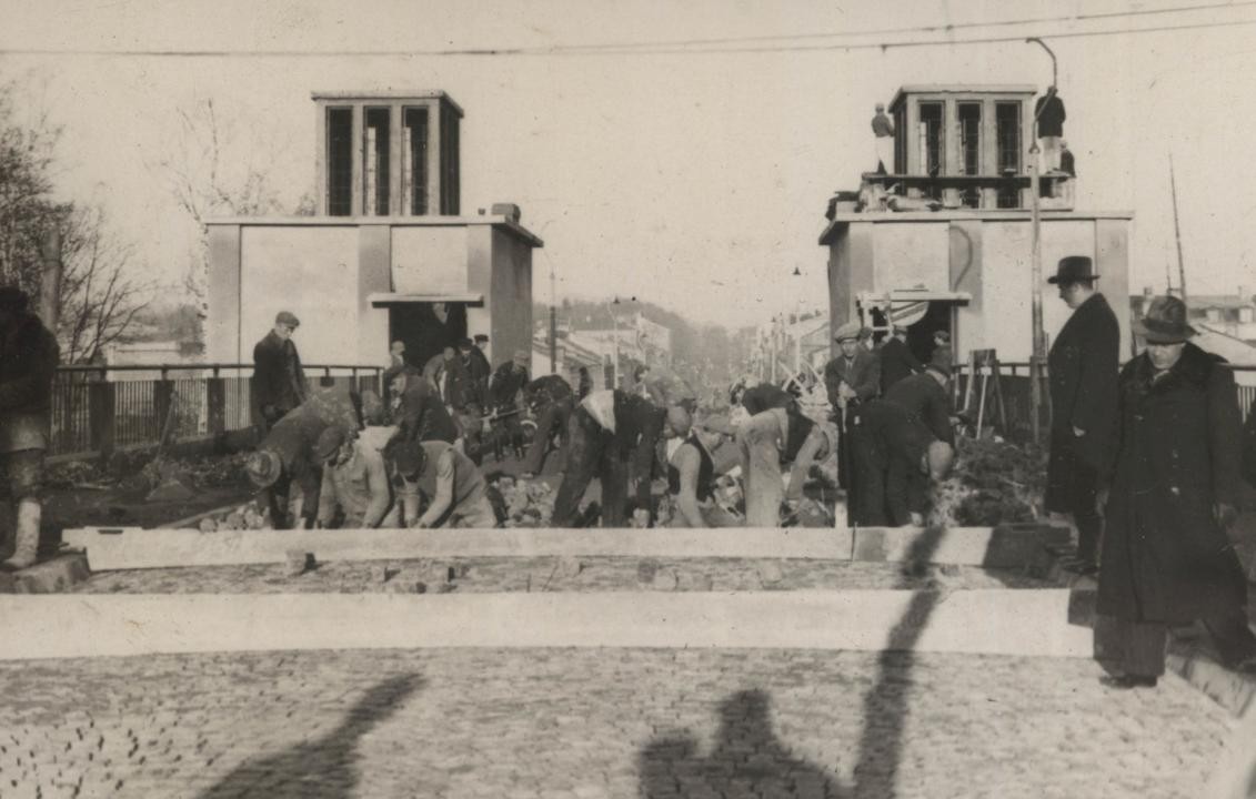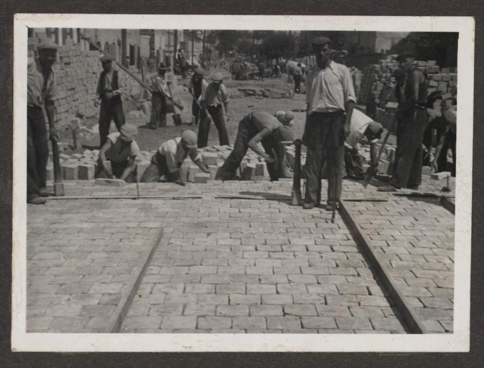 Prace brukarskie przy budowie wiaduktu w Radomiu w latach 30. XX w [ul. J. Słowackiego] (Miejska Służba Drogowa w Radomiu, sygn. 16)