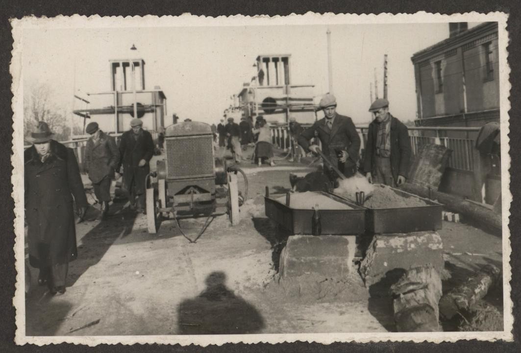Prace przy budowie wiaduktu w Radomiu w latach 30. XX w. [ul. J. Słowackiego] (Miejska Służba Drogowa w Radomiu, sygn. 16)